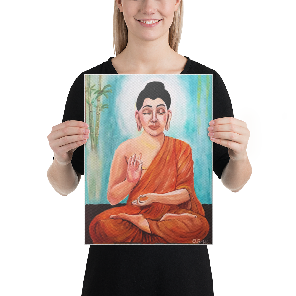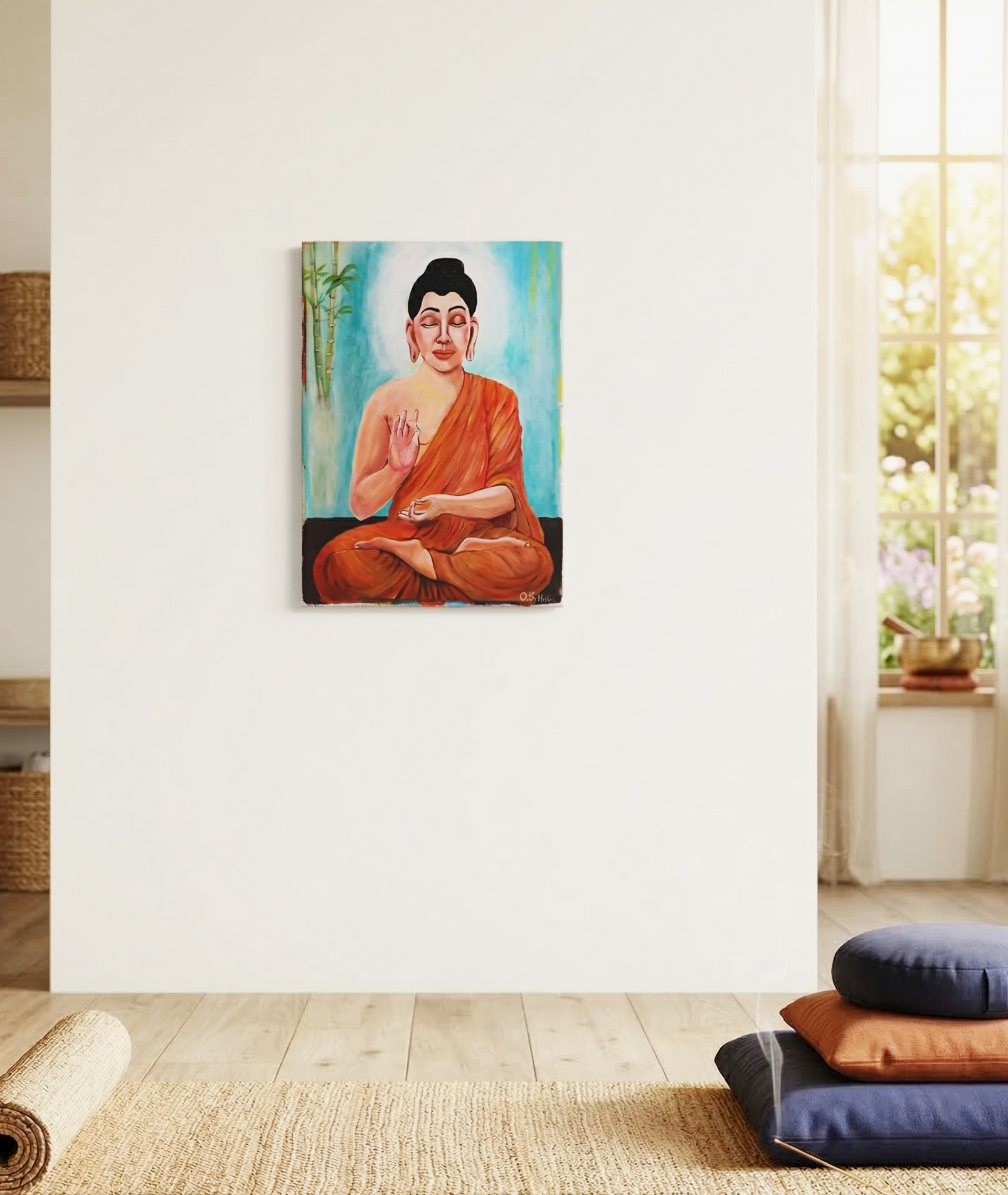 Meditierender Buddha – Leinwanddruck nach Originalgemälde von Oswald Schlipf – Spirituelle Wandkunst für Yoga, Meditation und ruhige Wohnräume