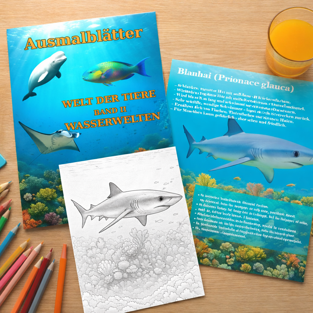 Kreative AusmalbücherWelt der Tiere – Band II: Wasserwelten | DIN-A4 Ausmal- und Wissensblätter (PDF)